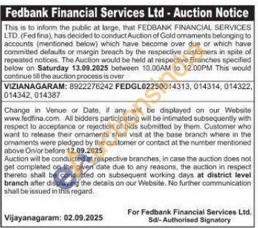 Fedbank Financial Services Ltd Gold Auctions Auction in Nellore