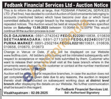 Fedbank Financial Services Ltd Gold Auctions Auction in Visakhapatnam