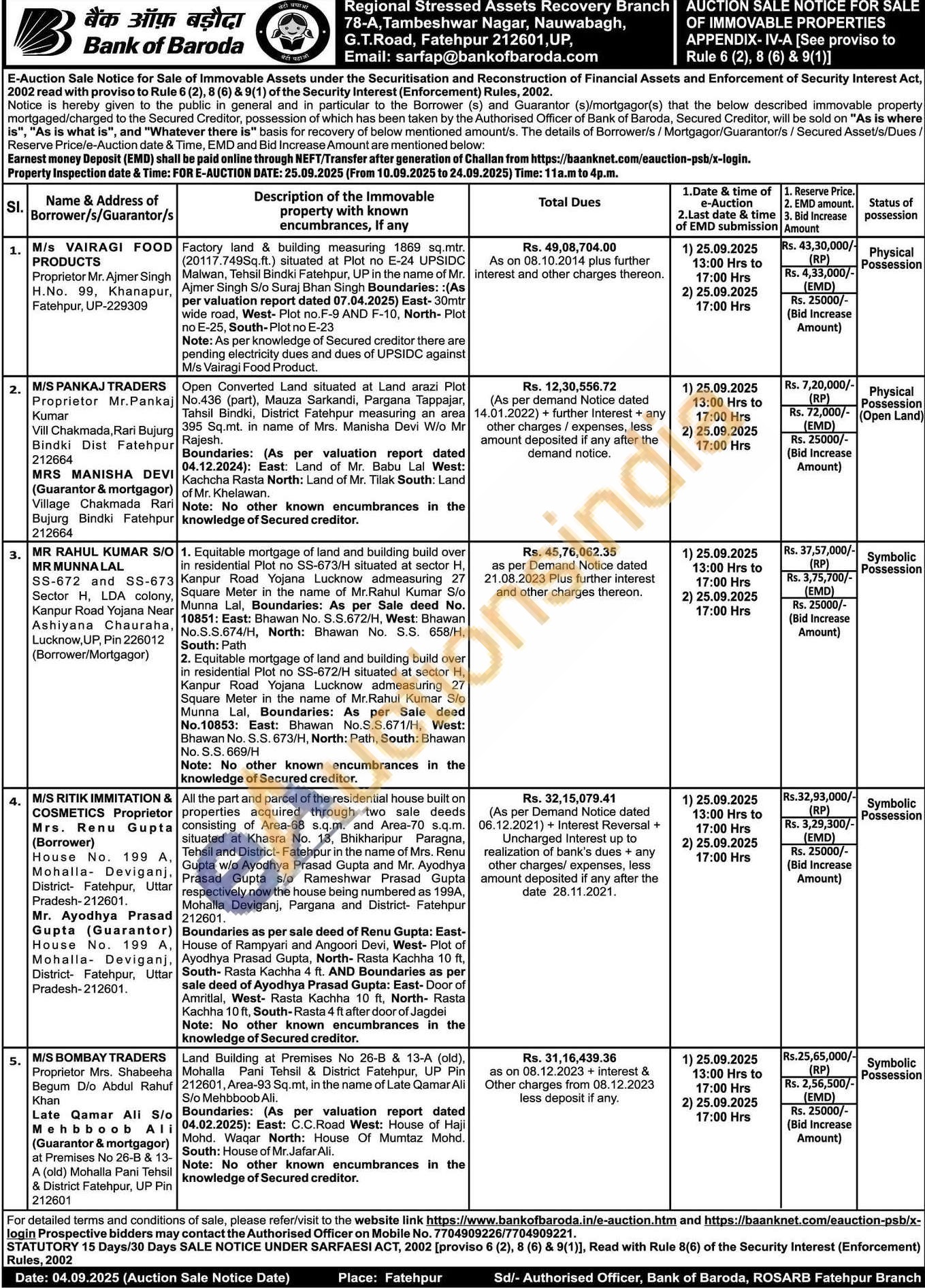 Authorised Officer on Mobile No : 7704909226 / 7704909221