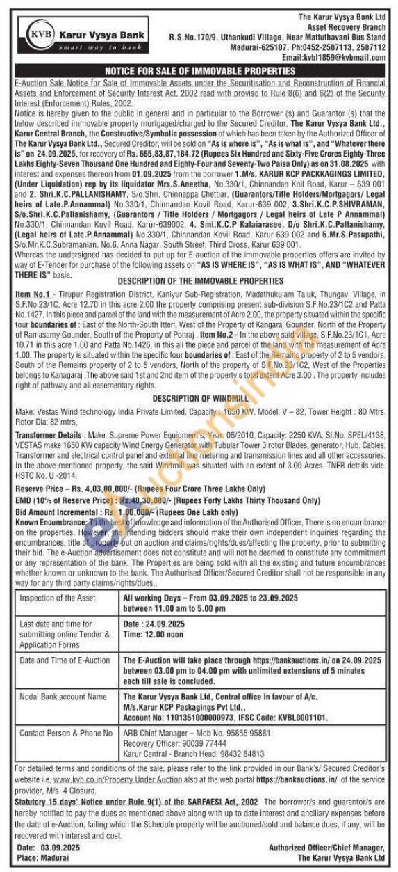 Item No.1 Tirupur Registration District, Kaniyur Sub-Registration, Madathukulam Taluk, Thungavi Village, in S.F.No.23/1C, Acre 12.70 in this acre 2.00 the property comiprising present sub-division S.F.No.23/102 and Patta No. 1427, In this piece and parcel of the land with the measurement of Acre 2.00, the property situated within the specific four boundaries of: East of the North-South Itterl, West of the Property of Kangaraj Gounder, North of the Property of Ramasamy Gounder, South of the Property of Ponraj. Item No.2- In the above said village, S.F.No.23/1C1, Acre 10.71 in this acre 1.00 and Patta No.1426, in this all the piece and parcel of the land with the measurement of Acre 1.00. The property is situated within the specific four boundaries of East of the Remains property of 2 to 5 vendors South of the Remains property of 2 to 5 vendors. North of the property of S.F.No.23/1C2, West of the Properties belongs to Kanagaraj The above said 1st and 2nd item of the property's total extent Acre 3.00. The property includes right of pathway and all easementary rights.