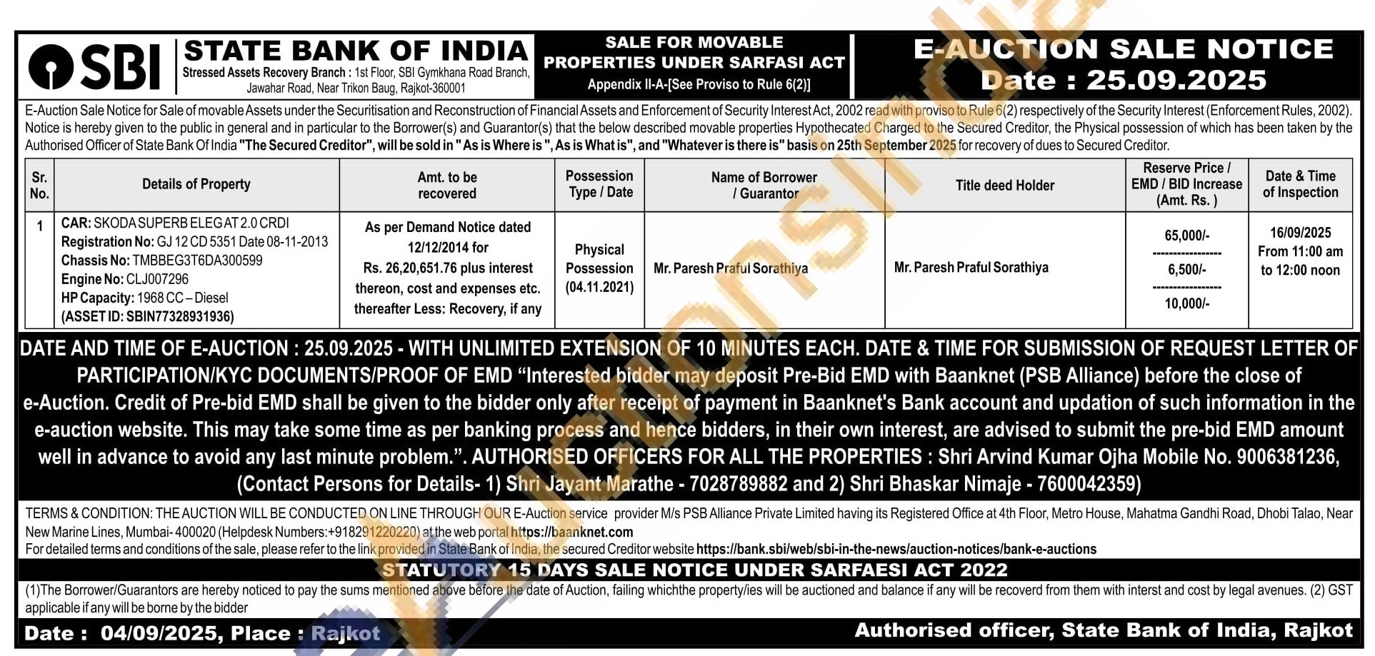 Registration No: GJ 12 CD 5351 Date 08-11-2013.