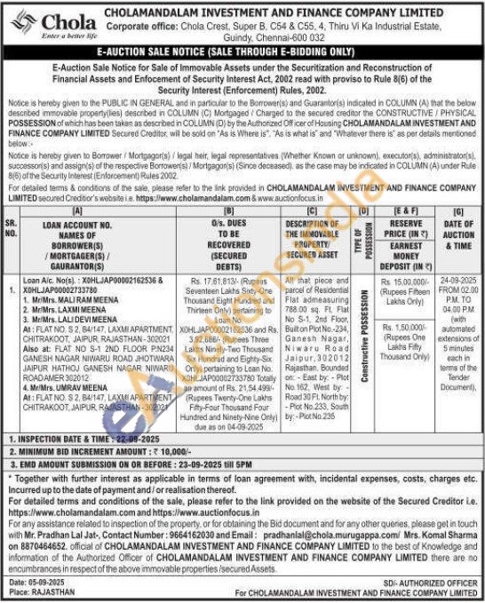 All that piece and parcel of Residential Flat admeasuring 788.00 sq. Ft, Flat No S-1. 2nd Floor, Built on Plot Ne-234, Ganesh Nagar, Niwaru Road Jaipur.302012 Rajasthan, Bounded on East by:-Plot No. 162. West by Road 30 Ft. North by: -Plot No.233, South by:-Plot No 236