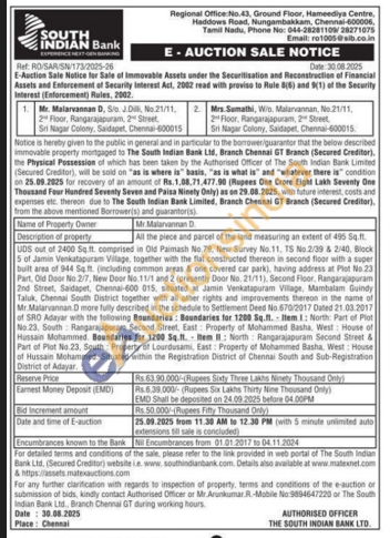 contact Authorised Officer Mr. Arukumar R-Mobile 9894647220