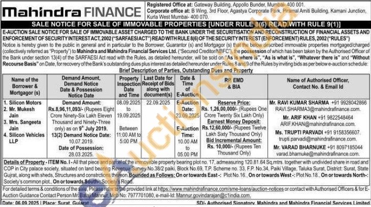 Authorised Officer : Mr. RAVI KUMAR SHARMA Contact No : +91 9928042866 / Mr. ARIF KHAN Contact No :+91 9822548464 / Ms. TRUPTI PARVADI Contact No : +91 9158356607 / Mr. VARAD BHARNUKE Contact No : +91 8097185044
