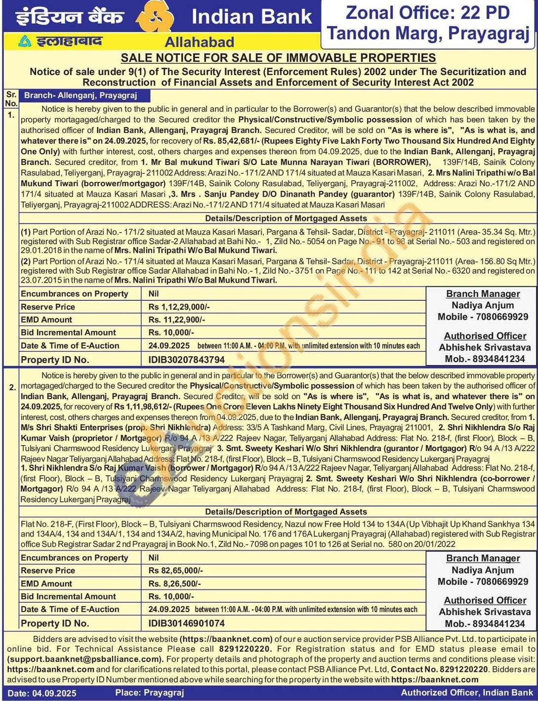 Details/Description of Mortgaged Assets :Flat No. 218-F, (First Floor), Block-B, Tulsiyani Charmswood Residency, Nazul now Free Hold 134 to 134A (Up Vibhajit Up Khand Sankhya 134 and 134A/4, 134 and 134A/1, 134 and 134A/2, having Municipal No. 176 and 176A Lukerganj Prayagraj (Allahabad) registered with Sub Registrar office Sub Registrar Sadar 2 nd Prayagraj in Book No.1, Zild No.-7098 on pages 101 to 126 at Serial no. 580 on 20/01/2022