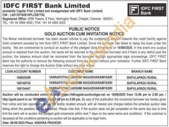 IDFC First Bank Ltd Gold Auctions Auction in Krishna