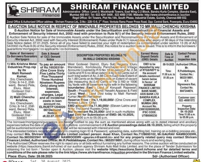 West Godavari District, Eluru Sub Registry, Eluru Mandalam, Komdavolu Panchayat and Village Accounts Covered by RS No: 15 an extent of Ac. 2.34 Cents and RS no:48 an extent of Ac 0.54 Cents out of such total extent of Ac. 2.88 Cents East Side Extent of Ac 1.88 Cents on its Western side an Extent of vacant Site measuring Ac.0.40 Cents or Ha 0.160 or 1936 Sq. Yards with all easement rights with in the fallowing boundaries: East Land of Korupalli Rajeswari, South: Property of Alumilli Revathi Apparao & Field Canal: West: Land Sold today to Malli Ramesh Kumar, North: Rahadhari