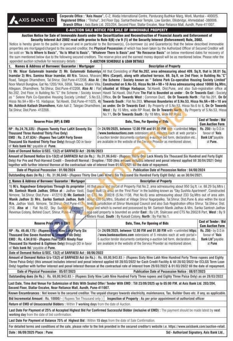 All that piece and parcel of Property Flat No. 2. area admeasuring about 950 Sq.ft. te. 88.29 Sq.Mtrs ( Super Built Up area) on the "First Floor in the building known as "Sky Sushila Apartment, Constructed on CTS No. 2002/8 (S.No.1138, Plot No.6) area admeasuring about 233 Sq.Mtrs out of area adm. about 630 Sq.Mtrs, Situated at Village Shirur Nagarpalika. Tal Shirur. Dist. Pune & also within the local limits & jurisdiction of Shirur Municipal Council and also Sub Registration office Shirut Tal Shirur, Dist Pune and which is owned and possessed by Mr. Santosh Manik Jadhav & Mrs. Sarika Santosh Jadhav and said property is bounded as under East: By Lift, Staircase and CTS No.2002/8 Part, West: By 9 Meters Road, South By Kukadi Colony, North: By Flat No.1.