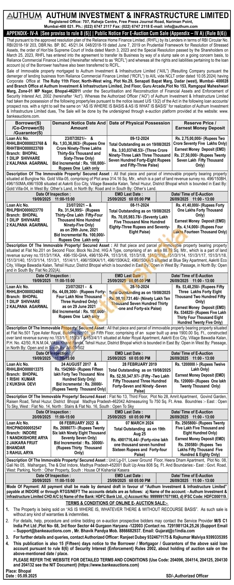 Description Of The immovable Property Secured Asset Al the ant percel of immovable property bearing property situated at Flat No 201 on Second Floor, Black No.2nd, HIG A Type, comprising of an area 88.79 50. Mr., which is a part of land survey по 151/3/1/1KA, 486-150-GHA, 436150-РА 153, 151/3/1/6 15/4/3/1/10, 151/3/1/14, 151/3/1/17, 151/3/1/18 151/3/1/40, 151/3/5/14, 151/3/1, 1554/11 496/150KA/1/1, 496/150KA/2 496/150KA/3 situated at Blue Sky Apartment, Aairiti Eco City, Village Bawada Kalan, Tetail shal Huzur Huzur District Shooal which is zounted in East By: Open in West By: Passage, in North By: Open and in South By: Fiat No 202(A)