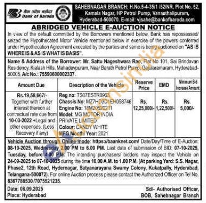 contact the Authorized Officer on Tel No. 8367788530/7075521235
