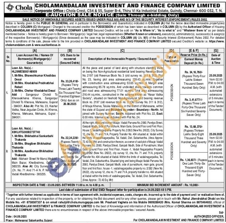 All the right, titles and interest Mauje: Vadal Parvana No.2060, Pandya Street, Ganpati Madh, Side of Purnabhumi, Main Gate, Ground Floor and First Floor, House 1, Vadali Nagarpalika Property No.2/262 (New No. 2622), City Survey 12. cha No. 71 and 71/A, Property Transter No. 404 situated at. Vadali within the limits of vadali Nagarpalika, Tal. Vadal, Dist. Sabarkantha (Area Approx 72.43 Sq. Mtr) and construction thereon, as owner of said plot of Mauje: Vadail Parvana No. 2060, Pandya Street, Ganpati Madh, Side of Purvabhumi, Main Gate, ground Floor and First Floor, House -1. Vadali Nagarpalika Property No. 2/262 (New No. 2622), city survey 12, cha. No. 71 and 71/A, property Transfer No. 404 situated at Vadali. Within the limits of vadalinagarpalika, Tal Vadali, Dist. Sabarkantha. Situated lying and being Mauje: Vadali Parvana No. 2060, Pandya Street, Ganpati Madh, side of purvabhumi, main gate, ground floor and first floor, house -1, vadalinagarpalika property no. 2/262 (New No. 2/622), city survey 12, cha no. 71 and 71/A, property transfer no. 404 situated at. Vadali within the limits of vadalinagarpalika, Tal. Vadali, Dist. Sabarkantha. (Area Approx: 72.43 Sq. Μπή