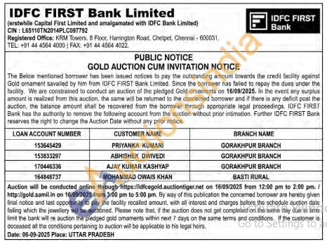 IDFC First Bank Ltd Gold Auctions Auction in Chennai