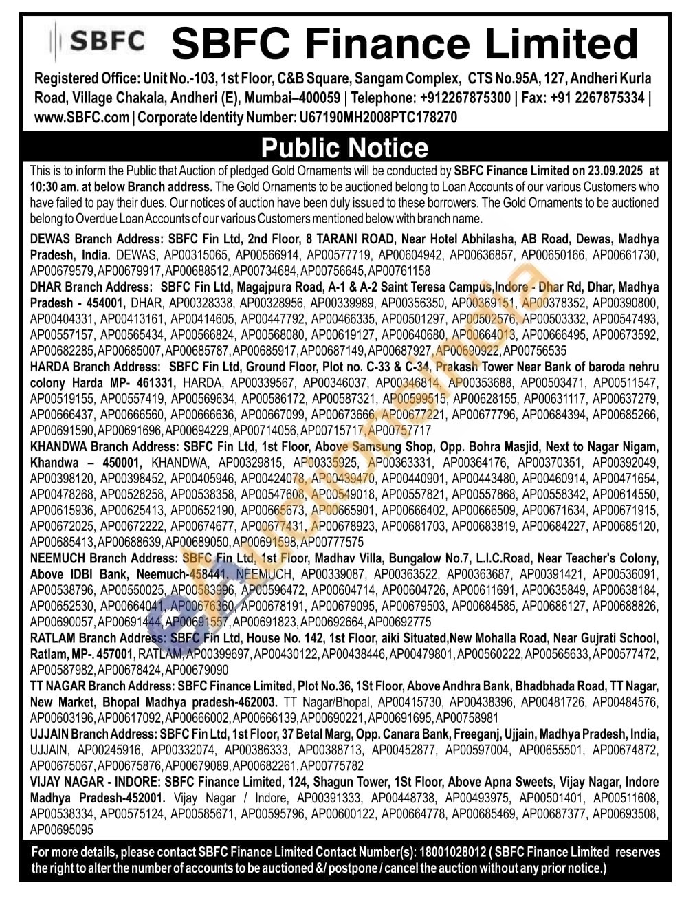 SBFC Finance Ltd Gold Auctions Auction in Dewas