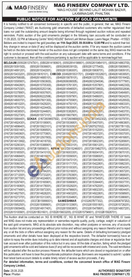 MAG Finserv Company Limited Gold Auctions Auction in Satara