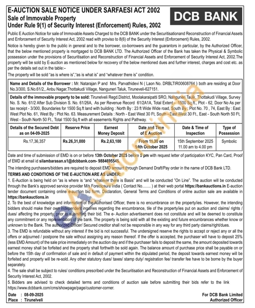 Tirunelveli Regd. District, Moolakaraipatti SRO, Nanguneri Taulk, Thottakudi Village, Survey No. S. No. 61/2 After Sub Division S. No. 61/26A, As per Revenue Record 61/2A1A, Total Extent-1500 Sqft., Plot-62. Door No As per tax receipt-3/300, Boundaries for 1500 Sq.ft land with building: North By: 23 ft Wide Wide mad, South By: Plot No. 70, 74, East By: East West Plot No. 61. West By: Plot No. 63. Measurement Details: North-East West 30 Ft, South-East West 30 Ft, East-South North 50 Ft. West-South North 50 Ft., Total 1500 Sq ft with all easements Rights and Pathway.
