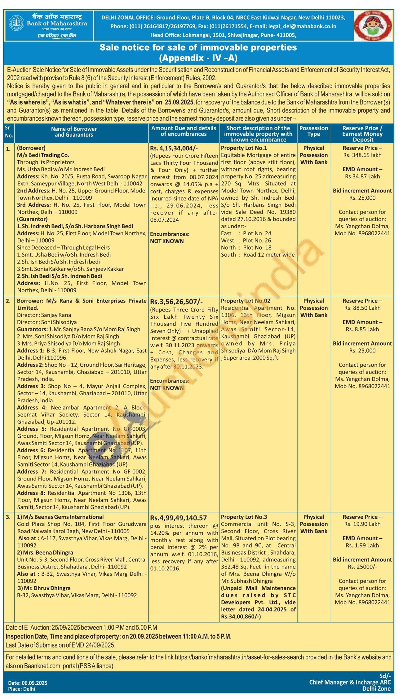 Contact person for queries of auction: Ms. Yangchan Dolma, Mob No. 8968022441