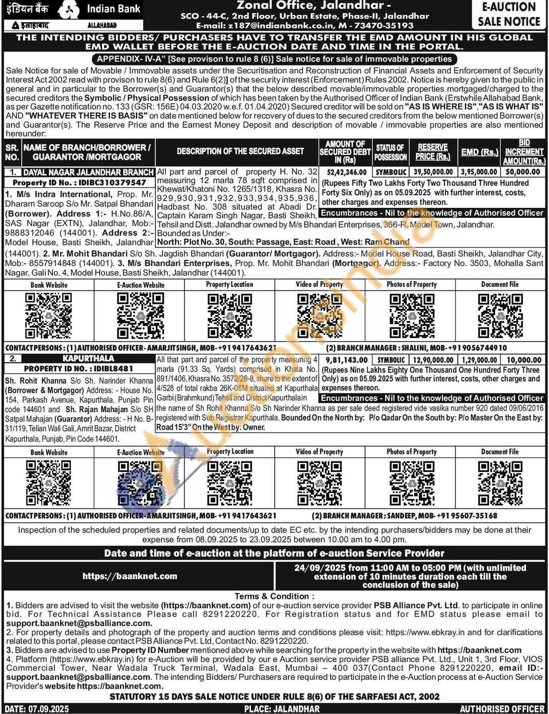 CONTACT PERSONS: CONTACT PERSONS: (1) AUTHORISED OFFICER-AMARJITSINGH, MOB-+919417643621 BRANCH MANAGER: SANDEEP, MOB-+9195607-35168