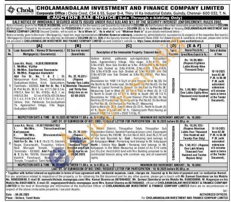 Contact Mr.Samuel Samidurai on his Mobile No. 9500350890, E-mail ID : samuels@chola.murugappa.com/Mrs. Komal Sharma on 8870464652. Mr. Samuel Samidurai on his Mobile No. 9500350890, M. Nagarajan on his Mobile No.9843148874