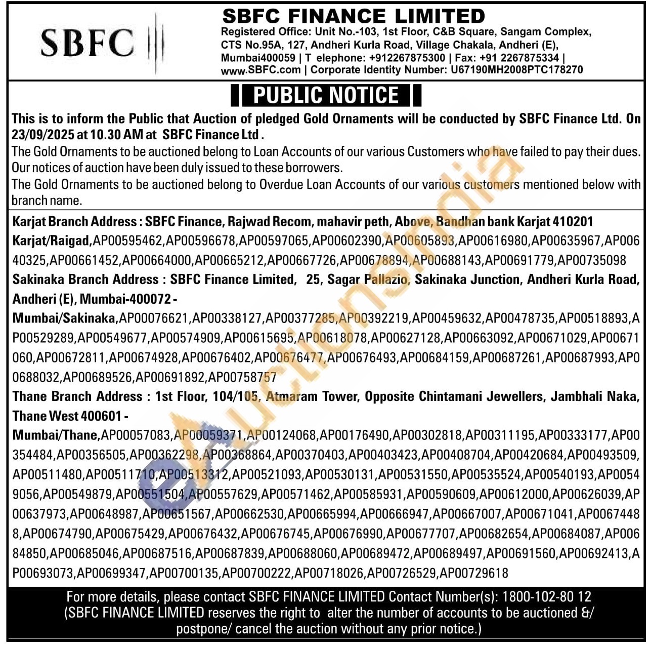 SBFC Finance Ltd Gold Auctions Auction in Raigad