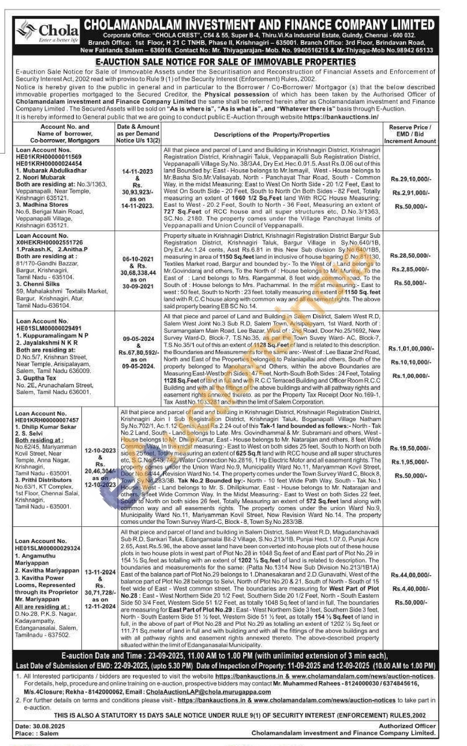 All that piece and parcel of land and building in Salem District, Salem West R.D, Magudanchavadi Sub R.D, Sankari Taluk, Edangansalai Bit-2 Village, S.No.213/1B, Punjai Hect. 1.07.0, Punjai Acre 2.65, Asst. Rs.5.96, the above asset land have been converted into house plots out of these house plots in two house plots in west part of Plot No.28 in 1048 Sq.feet of and East part of Plot No.29 in 154% Sq. feet as totalling with an extent of 1202% Sq.feet of land is related to description. The boundaries and measurements for the same: (Patta No. 1314 New Sub Division No.213/181A) East of the balance part of Plot No.29 belongs to 1. Dhanesakaran and 2.D. Gunavathi, West of the balance part of Plot No.28 belongs to Selvi, North of Plot No.20 & 21, South of North-South of 15 feet wide of East-West common street. The boundaries are measuring for West Part of Plot No.28: East-West Northern Side 20 1/2 Feet, Southern Side 20 1/2 Feet, North-South Eastern Side 50 3/4 Feet, Western Side 51 1/2 Feet, as totally 1048 Sq.feet of land in full, The boundaries are measuring for East Part of Plot No.29: East-West Northen Side 3 feet, Southern Side 3 feet, North-South Eastern Side 51 ½ feet. Western Side 51% feet, as totally 154% Sq.feet of land in full, in the above of part of Plot No.28 and Plot No.29 as totalling an extent of 1202% Sq.feet or 111.71 Sq.meter of land in full and with building and with all the fittings of the above buildings and with all pathway rights and easement rights annexed thereto. The above-described property situated within the limit of Edanganasalai Municipality.