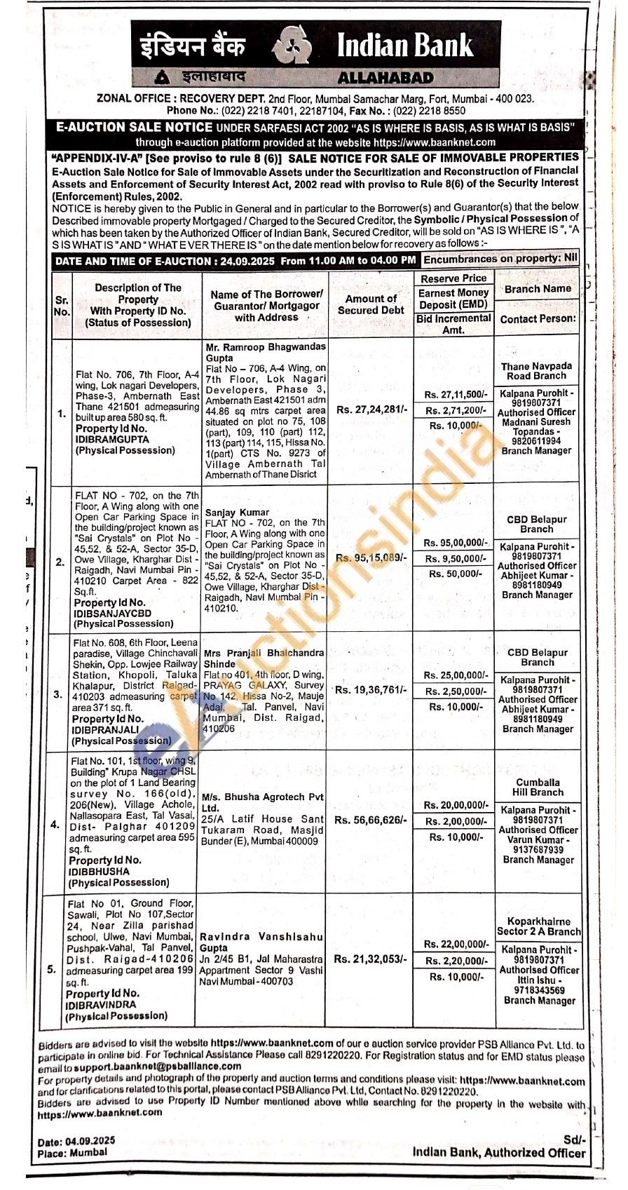 Flat No 01, Ground Floor, Sawali, Plot No 107, Sector 24. Near Zilla parishad school, Ulwe, Navi Mumbai, Pushpak-Vahal, Tal Panvel, Dist. Raigad-410206 admeasuring carpet area 199 sq. ft. Property Id No. IDIBRAVINDRA (Physical Possession)