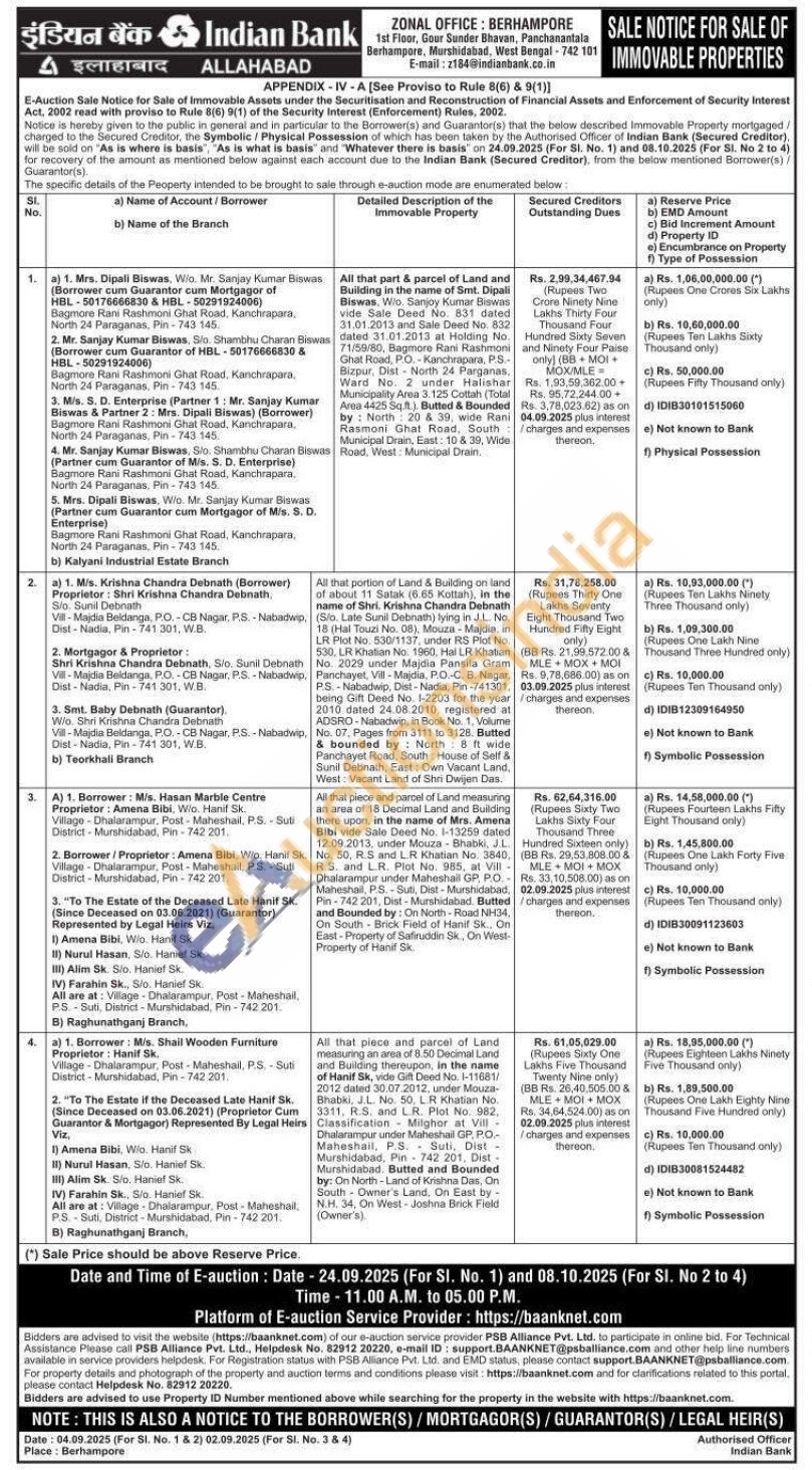 All that piece and pamet of Land measuring an area of 18 Decimal Land and Buildin There upon, in the name of Mrs. Amena Bibi Sale Deed No. 1-13258 dated 109.2013 under Mouza Bhabki J. 50. R.S and LR Khatian No. 3840, S and LR. Plot No. 1 at Vill Dhalarampur under Maheshail GP, Mahoshal, PS-Sub, Dist - Murshidabad, Pin-742201, Dist-Murshidabad Butted and Bounded by On North-Road NH34, On South Brick Field of Hanil Sk On East Property of Sahruddin Sk, On West Property of Hanif Sk
