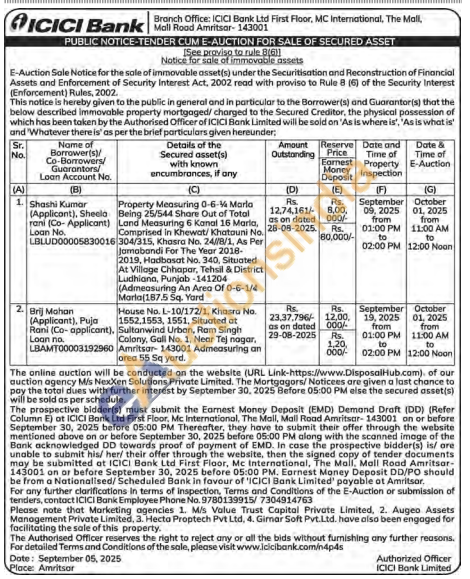 House No. L-10/172/1, Khasra No. 1552.1553, 1551, Situated at Sultanwind Urban, Ram Singh Colony, Gali No. 1, Near Tej nogar, Amritsar 143001 Admeasuring an area 55 Sq yard.