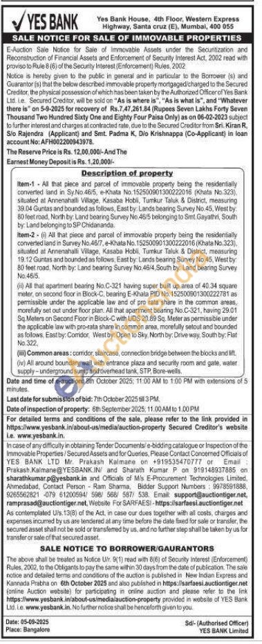Item-2- (1) All that piece and parcel of immovable property being the residentially converted land in Survey No.46/7, e-Khata No. 152500901300222016 (Khata No.323), situated at Annenahalli Village, Kasaba Hobii, Tumkur Taluk & District, measuring 19.12 Guntas and bounded as follows, East by: Lands bearing Survey No 45, West by 80 feet road, North by: Land bearing Survey No.46/4, South by Land bearing Survey No. 46/5.