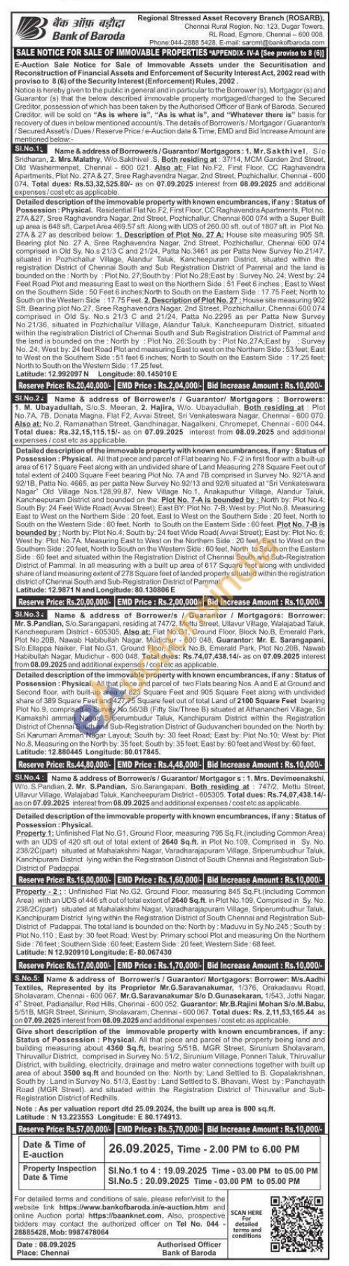 Contact the authorized officer on Tel No. 044 28885428, Mob: 9987478064