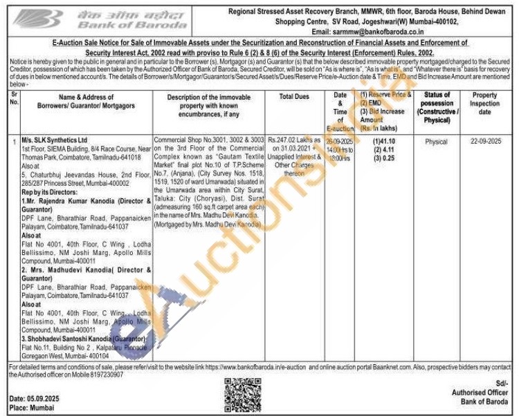 Commercial Shop No.3001, 3002 & 3003 on the 3rd Floor of the Commercial Complex known as "Gautam Textile Markel final plot No.10 of T.P.Scheme No.7. (Anjana), (City Survey Nos. 1518, 1519, 1520 of ward Umarwada) situated in the Umarwada area within City Surat, Taluka: City (Choryasi), Dist. Surat (admeasuring 160 sq.ft carpet area each in the name of Mrs. Madhu Devi Kanodia. (Mortgaged by Mrs. Madhu Devi Kanodia)