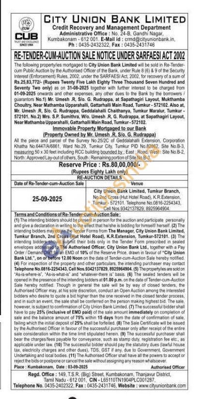 All the piece and parcel of the Survey No.25/20 of Geddalahalli Extension, Corporation Khatha No 6447/A/6861, Ward No.29, Tumikur City, Tumkur PID No.82862, Site No B-3, measuring 50 x 30 feet including RCC building bounded by: East Road, West Site No B-2, North Approved Lay-out of others, South: Remaining portion of Site No.8-3