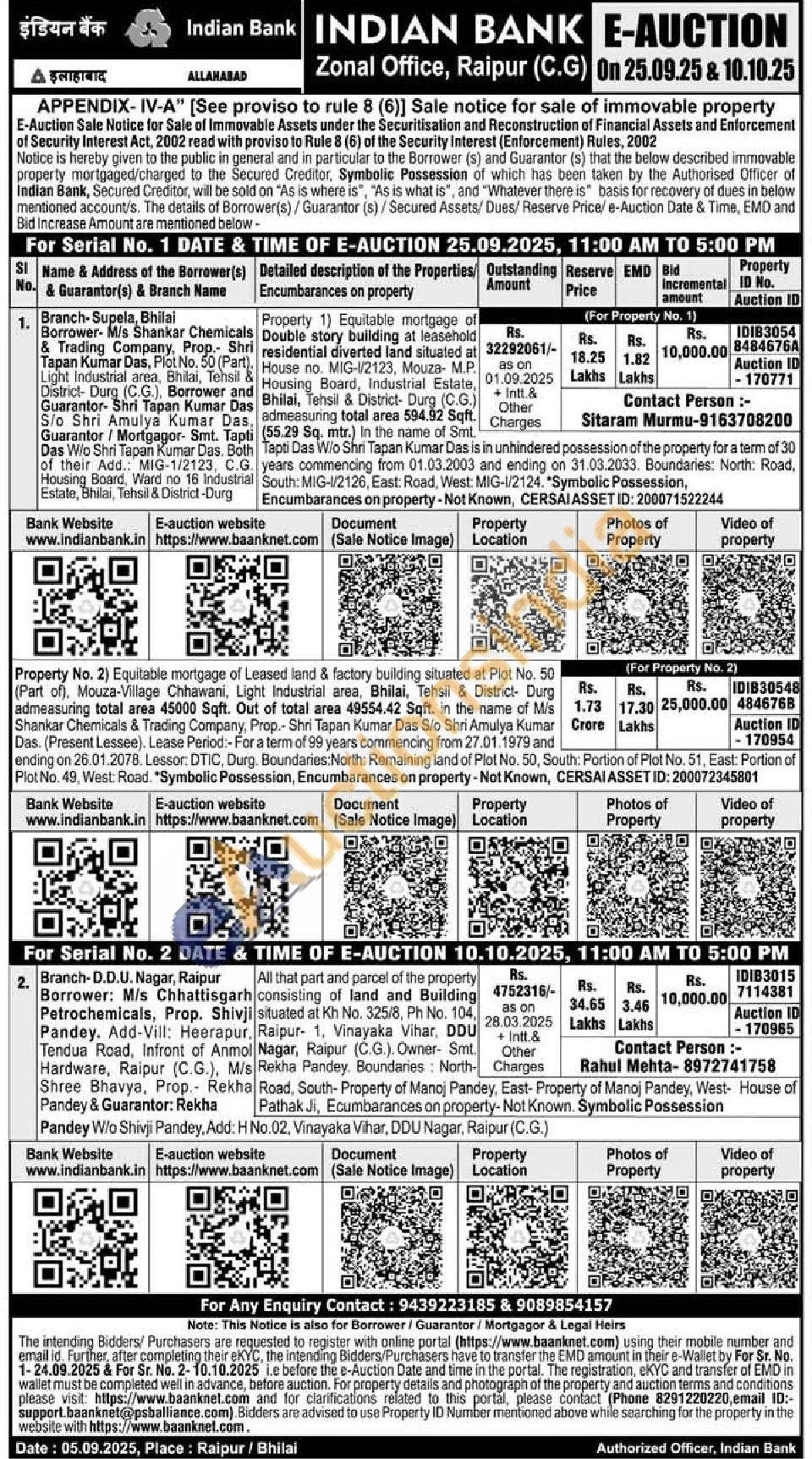All that part and parcel of the property consisting of land and Building situated at Kh No. 325/8, Ph No. 104, , Raipur- 1, Vinayaka Vihar, DDU Nagar, Raipur (CG). Owner- Smt.Rekha pandey .Boundaries :North- Road, South-Property of Manoj Pandey, East-Pathak Ji.