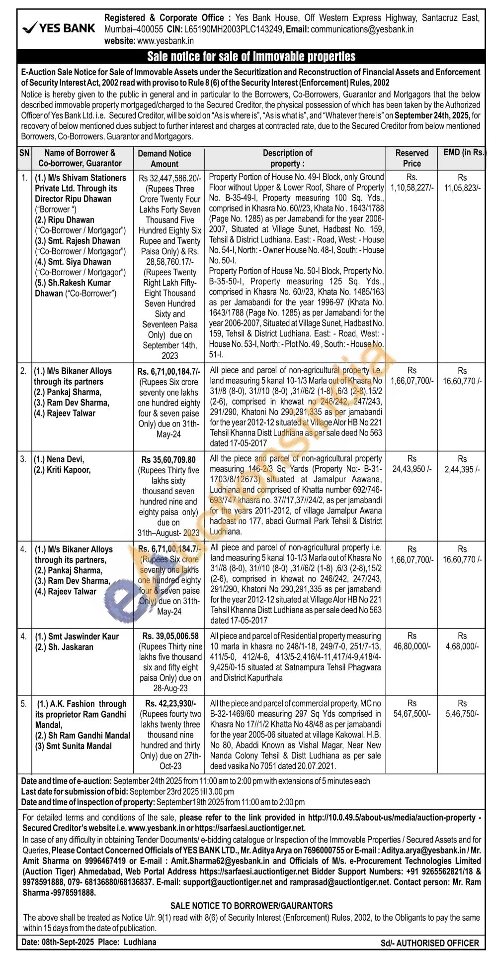 Contact Mr. Aditya Arya on 7696000755 or E-mail: Aditya.arya@yesbank.in/Mr. Amit Sharma on 9996467419 or E-mail: Amit.Sharma62@yesbank.in