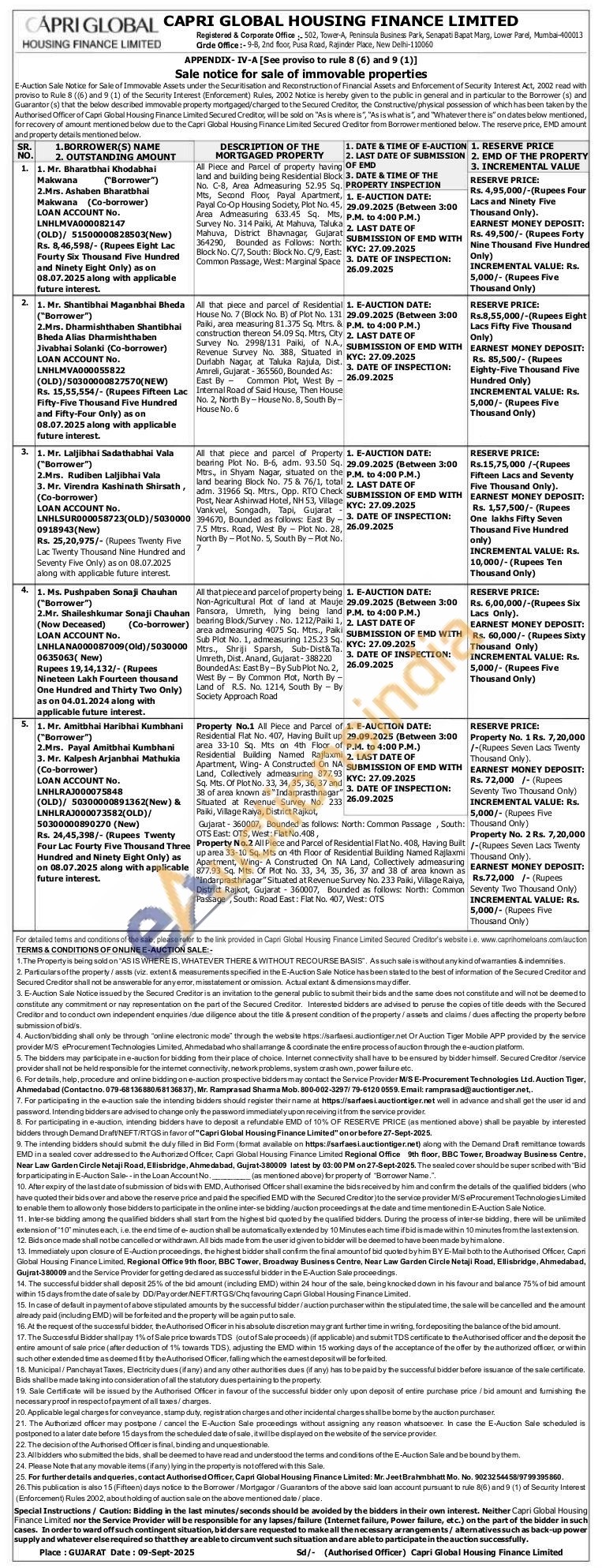 All that piece and parcel of Residential House No. 7 (Block No. B) of Plot No. 131 Paiki, area measuring 81.375 Sq. Mtrs. & construction thereon 54.09 Sq. Mtrs, Cty Survey No. 2998/131 Paiki, of N.A., Revenue Survey No. 388, Situated in Durlabh Nagar, at Taluka Rajula, Dist. Amreli, Gujarat-365560, Bounded As: East By Common Plot, West By Internal Road of Said House, Then House No. 2, North By-House No. 8, South By-House No. 6