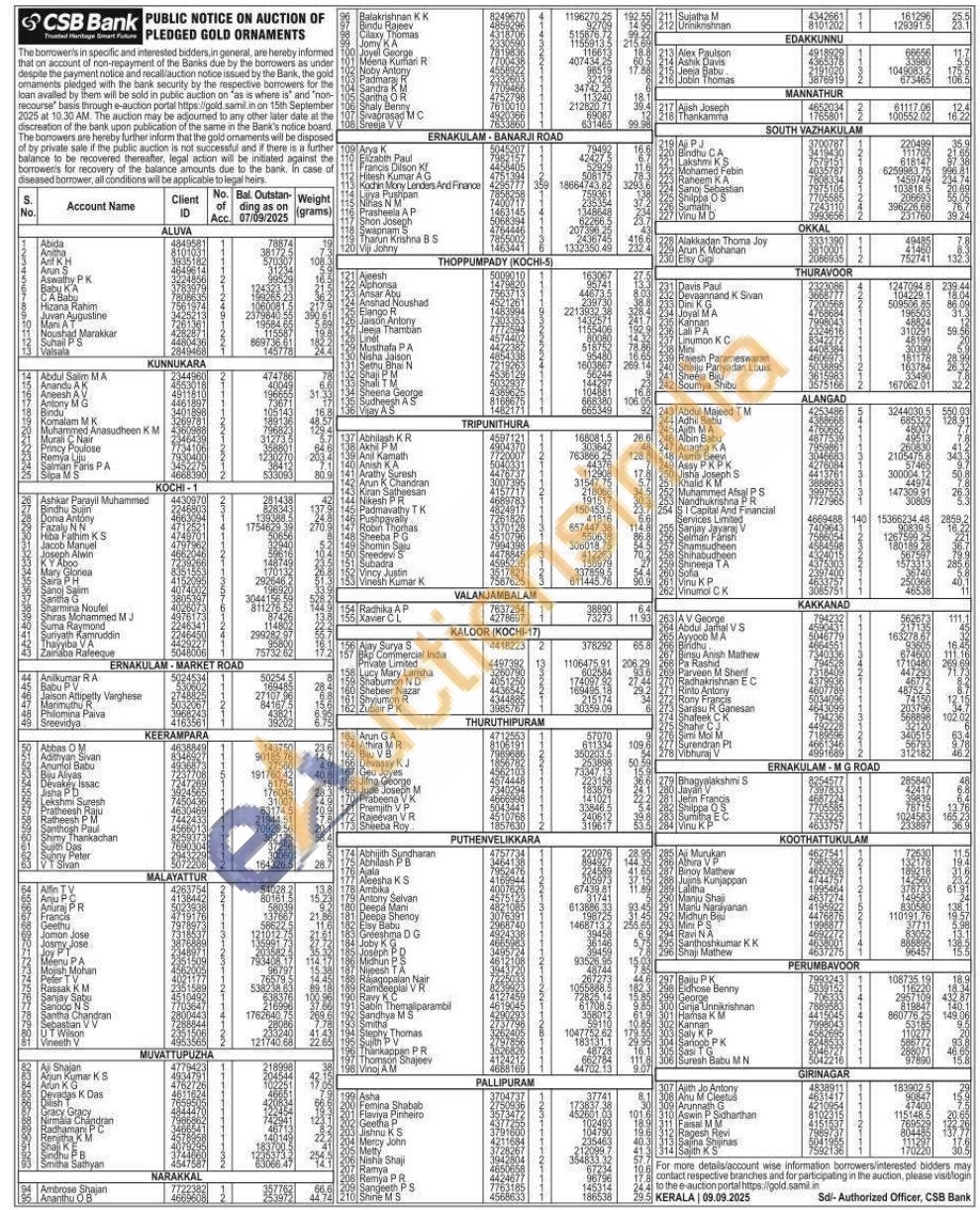 CSB Bank Gold Auctions Auction in Ernakulam