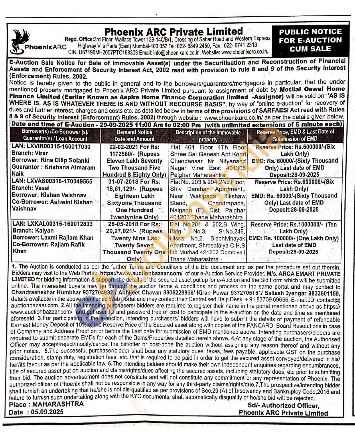 Flat No.201 & 202,B Wing, Bldg No.3, Sr.No.246, Hissa No.2, Siddhivinayak Apartment, Shrasafalya C.H.S Ltd Murbad 421202 Dombivali Thane Maharashtra