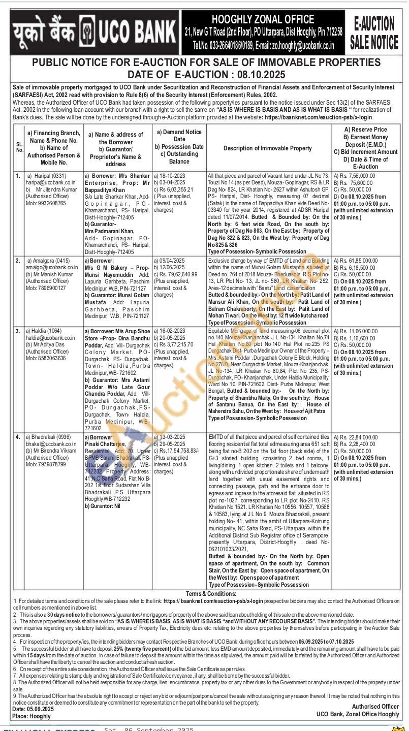 All that piece and parcel of Vacant land under JL No 73, Touzi No 14 (as per Deed), Mouza-Gopinagar, RS & LR Dag No- 824, LR Khatian No-2627 within Ashutosh GP, PS- Haripal, Dist Hooghly, measuring 07 decimal (Satak) in the name of Bappaditya Khan vide Deed No-03340 for the year 2014, registered at ADSR Haripal dated 11/07/2014. Butted & Bounded by: On the North by: 6 feet wide Road, On the south by: Property of Dag No 803, On the Eastby: Property of Dag No 822 & 823, On the West by: Property of Dag No 825 & 826