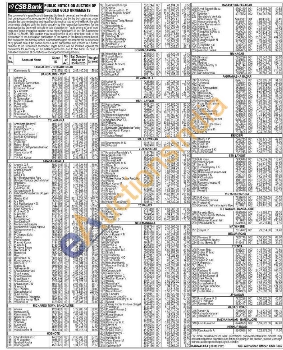 CSB Bank Gold Auctions Auction in Bengaluru