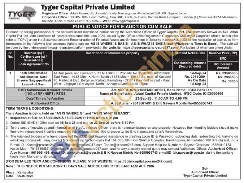 Authorised Officer - Ajay Kumar-Mobile No : 9619661491 / BK Naveen Mobile No : 8655956743