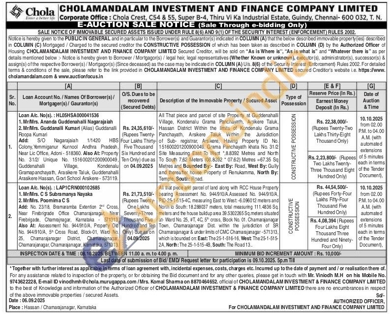 All that piece and parcel of land along with RCC House Property bearing Assessment No. 944/910/A. Assessed No. 944/910/A, PID-25-1-515-4C, measuring East to West: -6.096012 meters and North to South: 18.288037 meters, total measuring 111.4836 Sq. meters and the house buildup area 39.5302265 Sq meters situated at Ward No. 25, #T, 40, 5 cross, Block No. 01. Chamarajanagar Town, Chamarajanagar Dist. within the jurisdiction of SR Chamarajanagar & under limits of CMC Chamarajanagar-571313, which is bounded on: East: The 25-1-516-16, West The 25-1-515-2A, North: The 25-1-515-48, South: The Road 13...