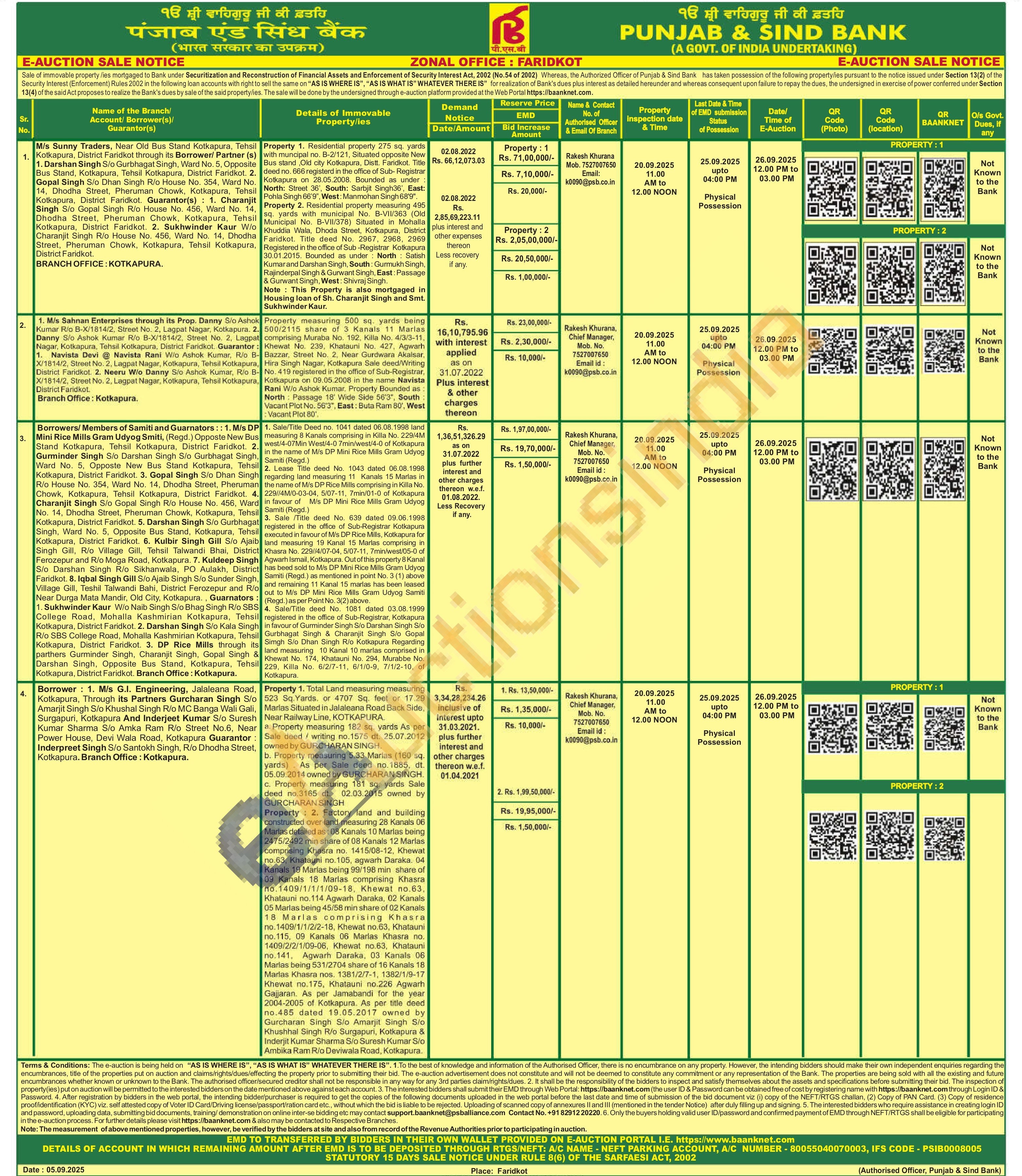 Property: 2. Factory land and building constructed over land measuring 28 Kanals 06 Marlas detailed as: 08 Kanals 10 Marlas being 2475/2492 min share of 08 Kanals 12 Marlas comprising Khasra no. 1415/08-12, Khewat no.63, Khatauni no. 105, agwarh Daraka. 04 Kanals 19 Marias being 99/198 min share of 09 Kanals 18 Marlas comprising Khasra по. 1409/1/1/1/09-18, Khewat no.63. Khatauni no.114 Agwarh Daraka, 02 Kanals 05 Marlas being 45/58 min share of 02 Kanals. 18 Marlas comprising Khasra no.1409/1/1/2/2-18, Khewat no.63, Khatauni no.115, 09 Kanals 06 Marias Khasra no. 1409/2/2/1/09-06, Khewat no.63, Khatauni no.141, Agwarh Daraka, 03 Kanals 06 Marias being 531/2704 share of 16 Kanals 18 Marlas Khasra nos. 1381/2/7-1, 1382/1/9-17 Khewat no.175, Khatauni no.226 Agwarh Gajjaran. As per Jamabandi for the year 2004-2005 of Kotkapura. As per title deed no.485 dated 19.05.2017 owned by Gurcharan Singh Sio Amarjit Singh S/o Khushhal Singh Rio Surgapuri, Kotkapura & Inderjit Kumar Sharma S/o Suresh Kumar S/o Ambika Ram Rio Deviwala Road Kotkapura