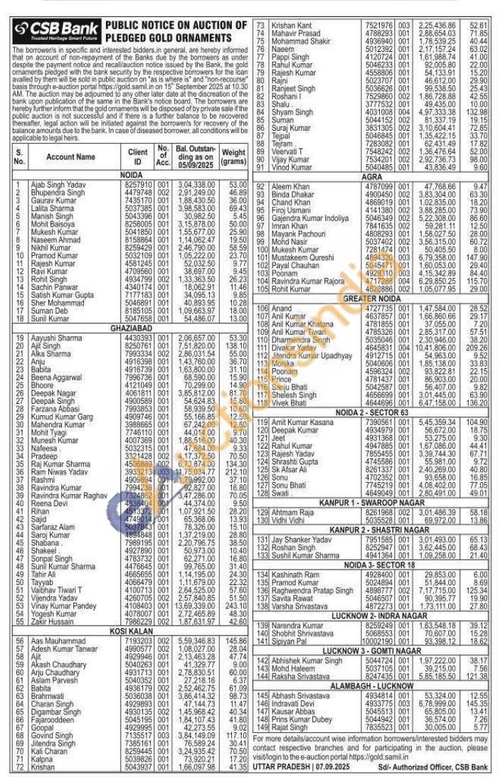 CSB Bank Gold Auctions Auction in Noida