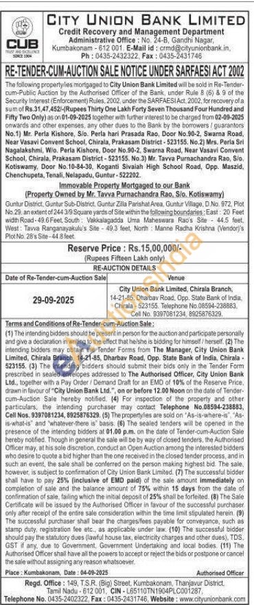 Guntur District, Guntur Sub-District, Guntur Zilla Parishat Area. Guntur Village, D.No. 972, Plot No.2, an extent of 244 3/9 Square yards of Site within the following boundaries: East: 20 Feet width Road-49.6 Feet, South Vakkalagadda Uma Maheswara Rao's Site 44.5 feet, West: Tavva Ranganayakulu's Site 40.3 feet, North Manne Radha Krishna (Vendor)'s Plot No. 28's Site-44.8 feet