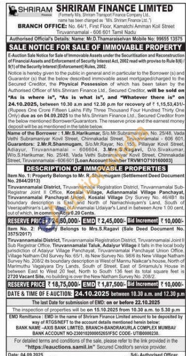 Tiruvannamalai District, Tiruvannamalai Registration District, Tiruvannamalai Joint II Sub Registrar Office, Tiruvannamalai Taluk, Adaiyur Village it falls in the local body jurisdiction of Adaiyur Village Panchayat, Tiruvannamalai Panchayat Union Office, Village Natham Old Survey No. 65/1, its New Survey No. 98/6 its New Village Natham Survey No. 208/2 its boundary description is West of Mannu Naikcar's house, North of Marimuthu Vagaiyara Dry Lands, South of Street, East of Sriramulu's House in between East to West 20 feet, North to South 136 feet its total square feet is 2720 Vacant Site, no building is over the New Natham Survey No. 208/2