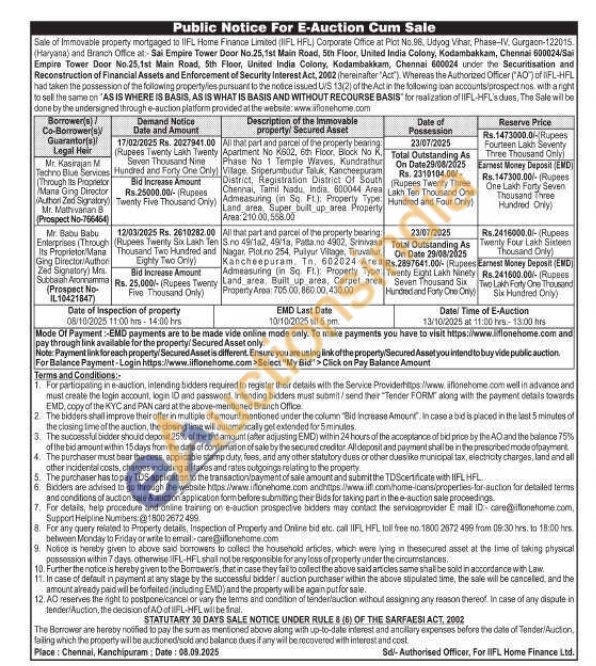 All that part and parcel of the property bearing: Sino 49/1a2, 49/1a, Paltano 4902, Srinivasa Nagar Plotno 254. Pulilyur Village, Tiruvallur, Kancheepuram. To, 602024 Area Admeasuring (in Sq. FL): Property Type Land area Built up area, Carpel area Property Area: 705.00,860,00,430:00
