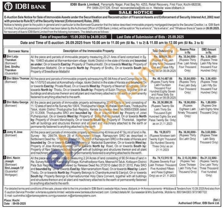 1) All the piece and parcels of immovable property measuring 20.21 Ares of land comprised in Sy No. 1046/2 situated at Mannamikandam village. Idukki District in the state of Kerala and bounded as under: On or towards East by: Property of Thekkumkattil, On or towards West by: Property of Sreedharan Mattathil, On or towards North by: Property of Sindhu, On or towards South by: Property of Sreedharan Mattathil