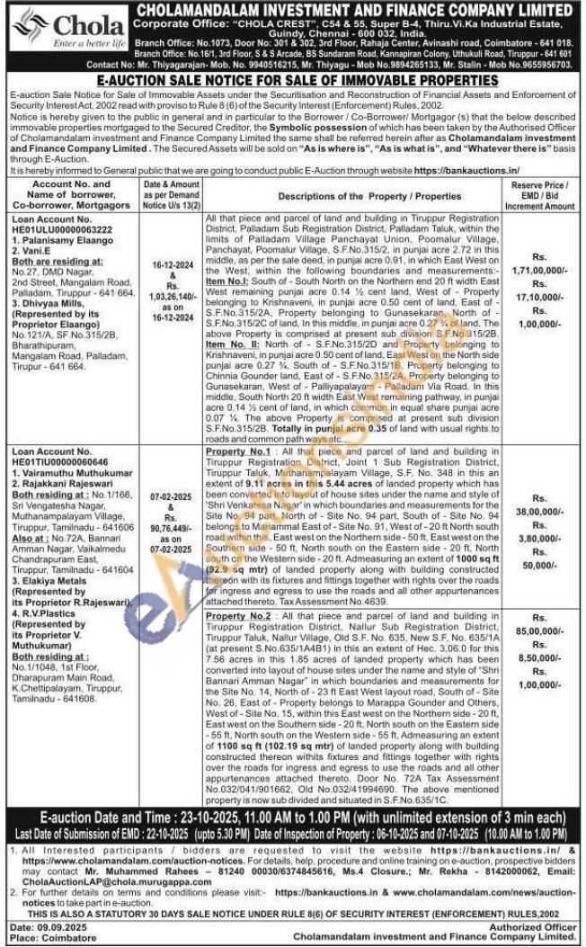 All that piece and parcel of land and building in Tiruppur Registration District, Palladam Sub Registration District, Palladam Taluk, within the limits of Palladam Village Panchayat Union, Poomalur Village, Panchayat, Poomalur Village, S.F.No.315/2, in punjai acre 2.72 in this middle, as per the sale deed, in punjai acre 0.91, in which East West on the West, within the following boundaries and measurements:-Item No.1: South of South North on the Northern end 20 ft width East West remaining punjai acre 0.14 1/2 cent land, West of Property belonging to Krishnaveni, in punjai acre 0.50 cent of land. East of S.F.No.315/2A, Property belonging to Gunasekaran, North of S.F.No.315/2C of land, In this middle, in punjai acre 0.27 3/4 of land. The above Property is comprised at present sub division S.F.No.315/2B.