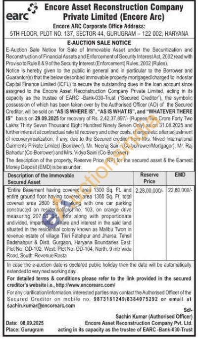 Authorized officer Mobile No : 9873181249 / 8384075292