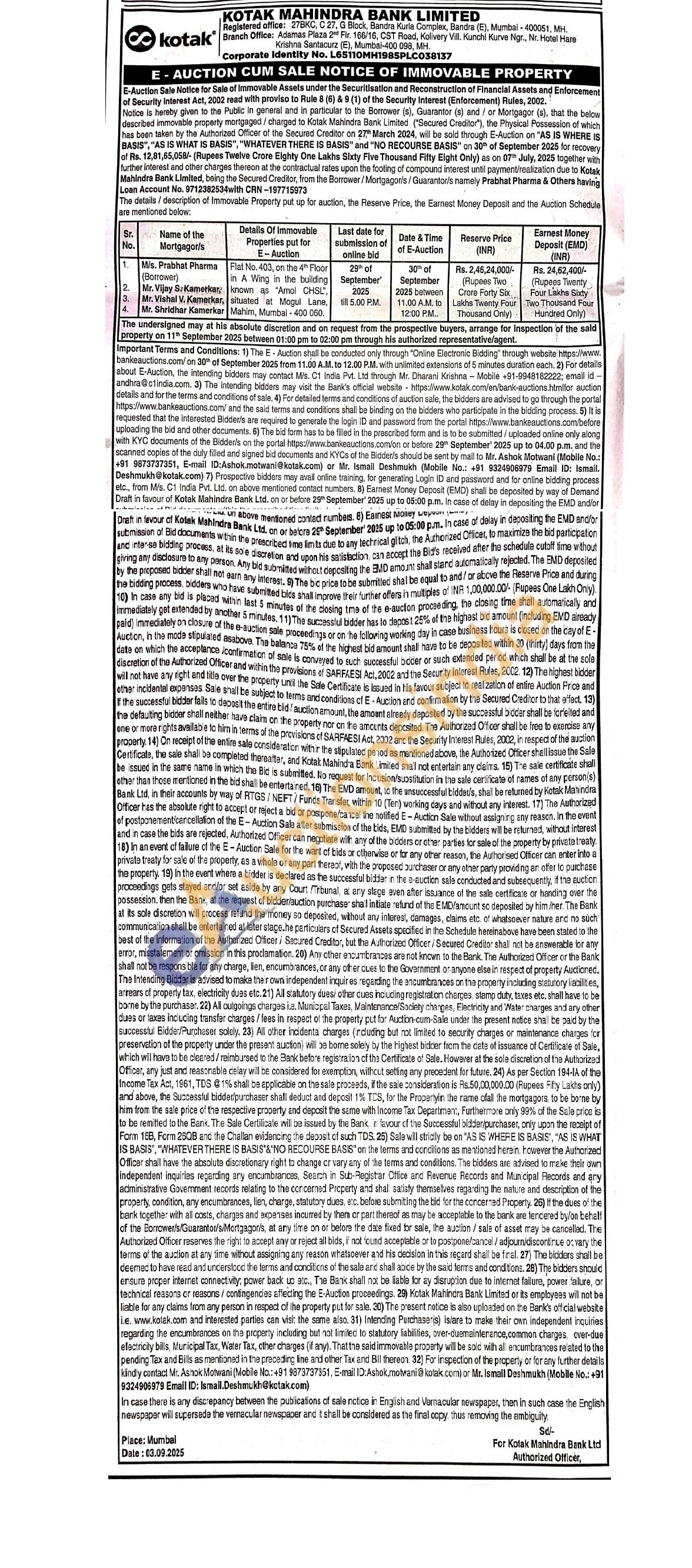 Mr. Ismall Deshmukh (Mobile No.: +91 9324906979
