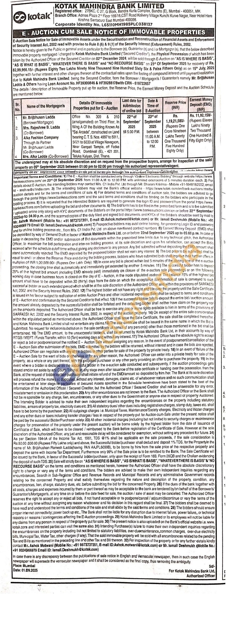Office No. 309 & 310 (amalgamated) on Third Floor, In Wing A Of the Building Known As "Sai Arcade", constructed on Land bearing C. T. S. Nos. 4997 to 5011, 5021 to 5033 at Village Navagaon, Near Ganpati Temple, off Fadke Road, Dombivali (E), 421 201. Taluka Kalyan, Dist. Thane